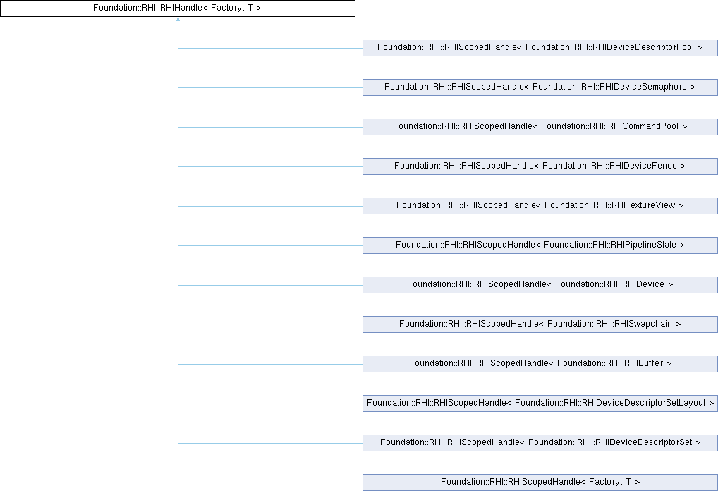 RHIHandle<Factory, T> are trivially copiable objects that provide a view into the underlying RHIObject storage. When a Factory goes out of scope, all underlying RHIObjects are destroyed.